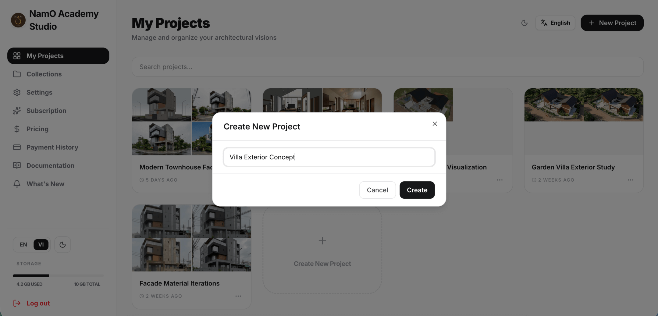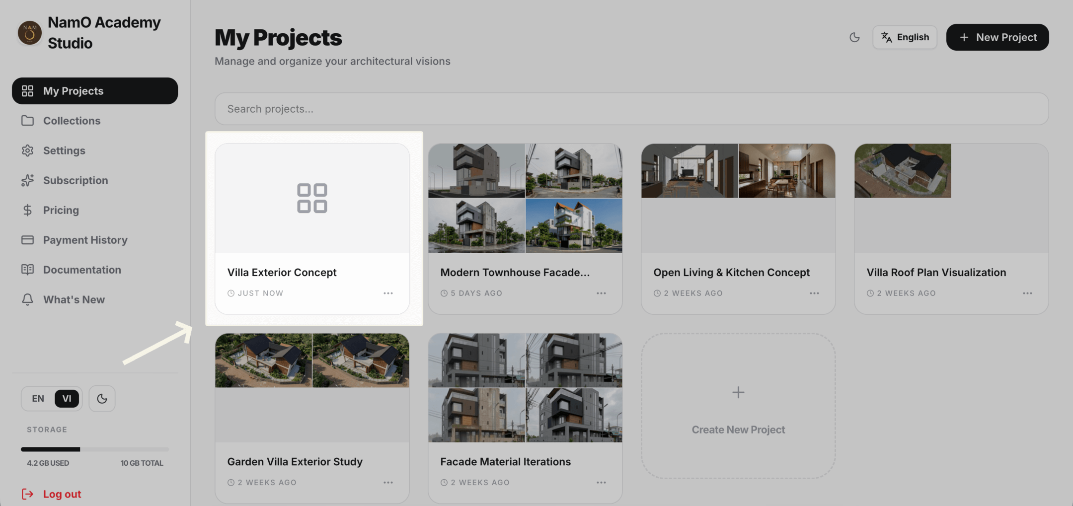 NamO Academy Studio is an AI-assisted board and workflow environment for architectural visualization. This documentation explains how projects, inputs, prompts, workflows, and the AI model work together so you can move from sketch to presentation-ready images quickly and repeatably.